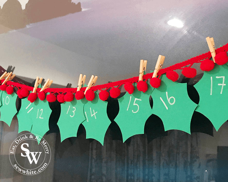 As well as the cute light bulbs I made a holly leaf advent calendar for the boyfriend and displayed it rather beautifully I think with red pompom trim to act as the berries. It’s hung up over the bed and it looks so cute. Each day he is planning to turn the affirmation around and read it. I’m amazed that no peaking has gone on.