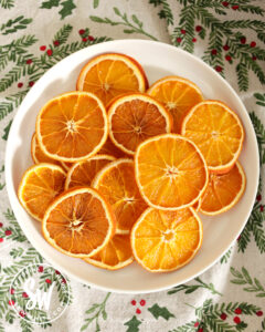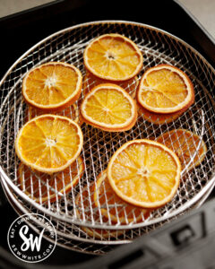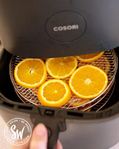 You don’t need a dehydrator to dehydrate orange slices you can do it quickly in an hour in an air fryer or if you’re turning the oven on to cook, you can pop them in there and dry them. out.