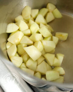 - (If you are doing a mix of Bramley and eating apples then add the eating apples once the Bramley apples start to soften and take off the heat after a few mins. They should be slightly soft but not falling apart.)