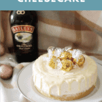 Pin this Baileys Cheesecake with white chocolate recipe to enjoy later