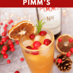 There are lots of toppings for a winter pimms. You can use fresh or frozen cranberries, slices of fresh oranges or even oven dried orange slices too.