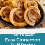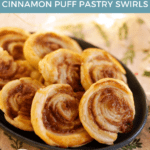 Feel creative and make them into different shapes. I’ve created them with pinwheels but they also work well as cinnamon puff pastry swirls what about twisting the puff pastry and making cinnamon puff pastry twists.