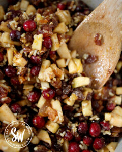 There are few things more Christmassy than cooked apples with cinnamon. The flavours are warm, and festive and work perfectly with the dried fruits and cranberry.