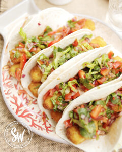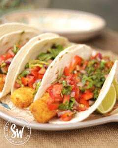 What a quick and easy meal! I often have fish finger wraps but I’d not actually thought about turning them into tacos with salsa etc.