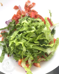 - Cut up the lettuce into thin strips and mix into the other ingredients.