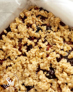 I love recipes that allow me to use up what I have left in the fridge and this jam flapjack recipe calls for any fruit jam. You can use up some strawberry jam or plum or even make a mixed berry if you’re feeling fancy.