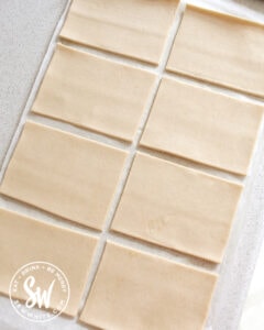 - Slice the shortcrust pastry sheet into 8 equal pieces.