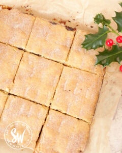 But if did want to jazz up this mincemeat bars recipe, you can serve them decorated with a sprig of holly. This brings the dessert to life but doesn’t forget to remove the holly before you actually serve the mincemeat shortbread traybake to your guests.
