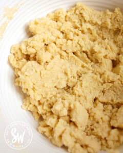 - Sieve in the plain flour and stir well until it forms a crumbly dough. You don't want to over-mix.