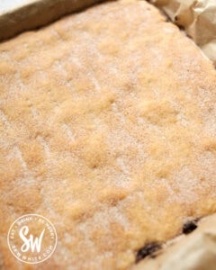 While your mincemeat shortbread bakes you can mix together the sugar and cinnamon, this will save you some time once it’s baked.