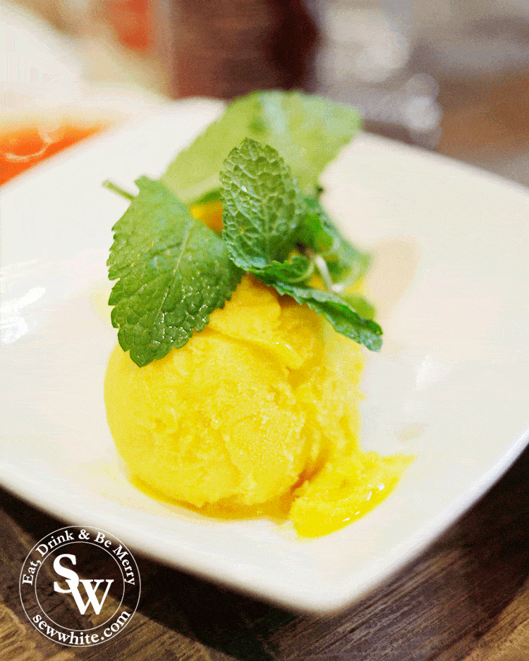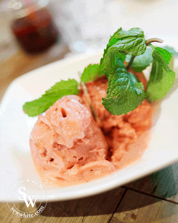 Due to our complete lack of decision making skills on what we individually wanted for pudding we decided to order and share them. We went for the strawberry and basil sorbet first. It was such an unusual flavour but one I really loved. The fruity summer berries mixed with iconic basil taste was so refreshing after the hot soups and noodles.