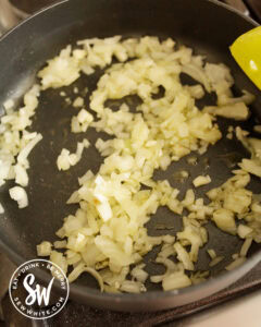 - Chop up an onion and soften in a saucepan with a little knob of butter.