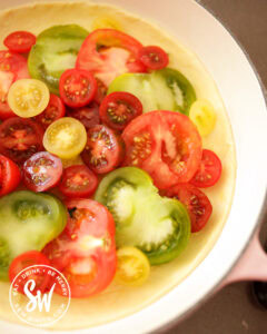A great dish to use up all the tomatoes from the garden! Super delicious! Love the multicolored effect of your dish, will try with a variety of tomatoes next time.