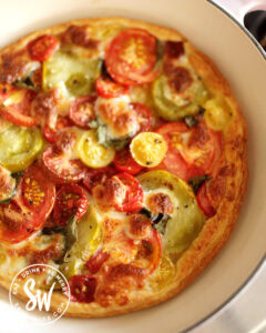 Having the creamy mozzarella cheese roasted on top was a must for me. I love how the cheese goes golden brown. It adds a delicious flavour to the finished tart and is definitely my go-to serving suggestion.