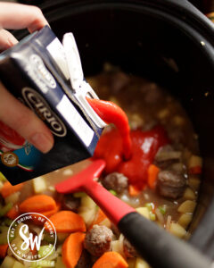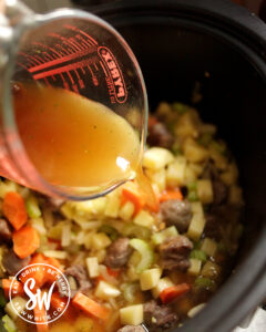 - Add the made up stock to the slow cooker