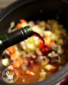 You can use a little of the wine you choose to drink as the wine element of the casserole. I would also recommend adding a splash to the slow cooker to as it’s cooking to boost that rich red flavour into the casserole too.