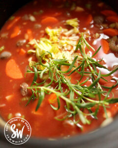 Don’t waste the little leaves that come on top of your celery. They’re full of flavour so make sure to add them to the stew.