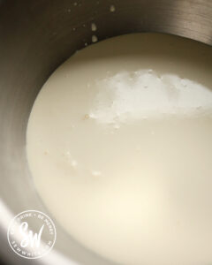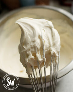 Whisk the mix until you have a thick mixture with stiff peaks. (You can do this with electric whisk.)