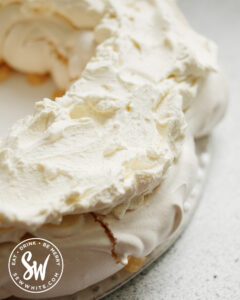 •Store the cooked meringue in an airtight box in a cool place for up to 2 weeks.•Pop the pavlova in a freezer-safe box in the freezer for a few months. (Freeze undecorated)