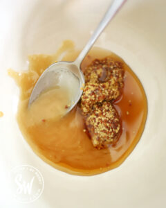 2 tbsp wholegrain mustard, 2 tbsp runny honey, 2 tbsp maple syrup, pinch salt